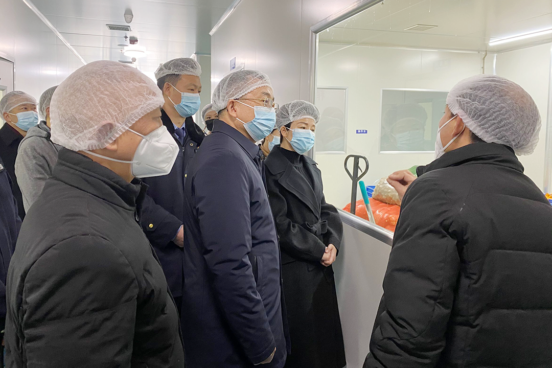 张发卫实地调研了企业食品安全工作情况,对照包保任务清单,仔细查看储藏间、操作间、加工间等卫生及管理情况,详细了解原材料采购、食材农残检测、产品质量追溯和员工健康管理等情况。