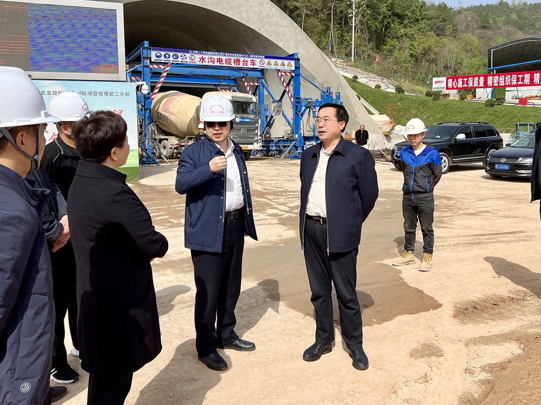 冉锦成一行先后到当阳隧道工点、沮河特大桥工点、高桥河特大桥架梁现场调研,与项目施工负责人深入交谈,仔细询问工程进度、存在的困难和安全管理等情况。