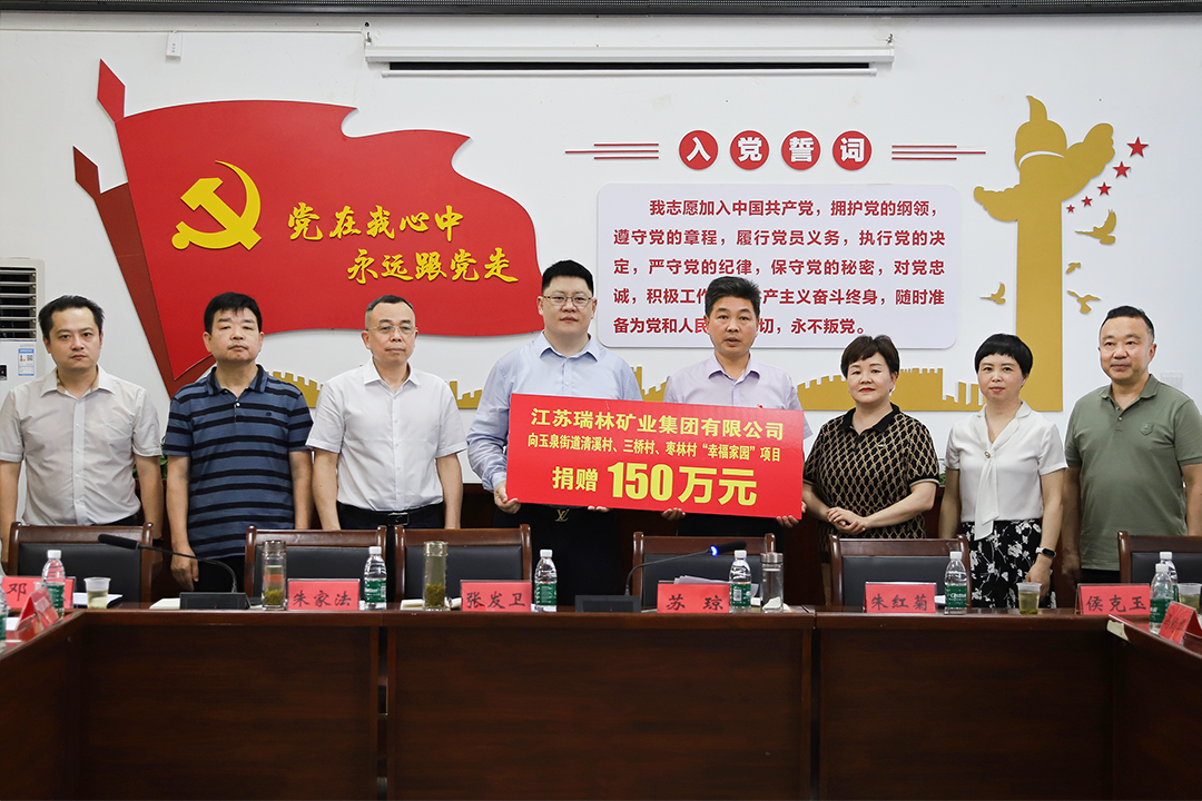 现场,江苏瑞林矿业有限公司当阳分公司负责人黄军华向玉泉街道清溪村、三桥村、枣林村“幸福家园”项目捐赠150万元。(通讯员 王中杰 龚宝文 侯克玉)