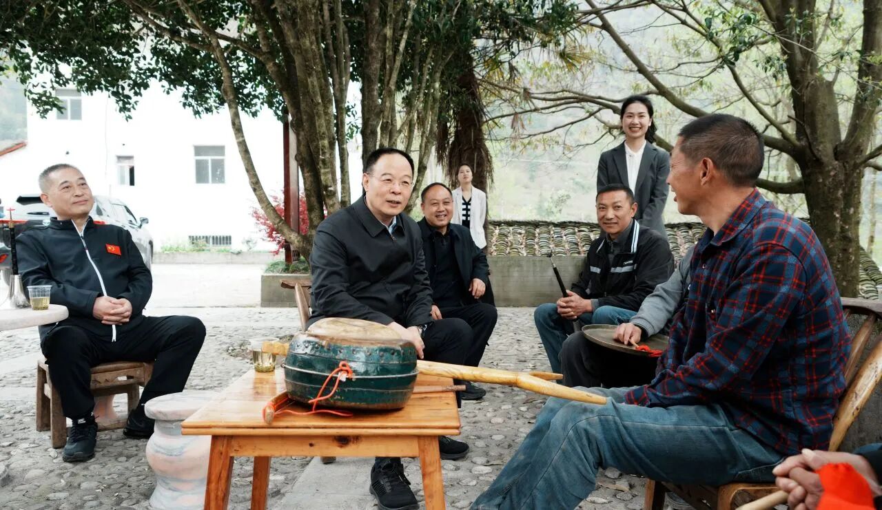 4月6日,孙伟在神农架林区新华镇调研,与顶塘鼓非遗传承人及当地群众深入交流