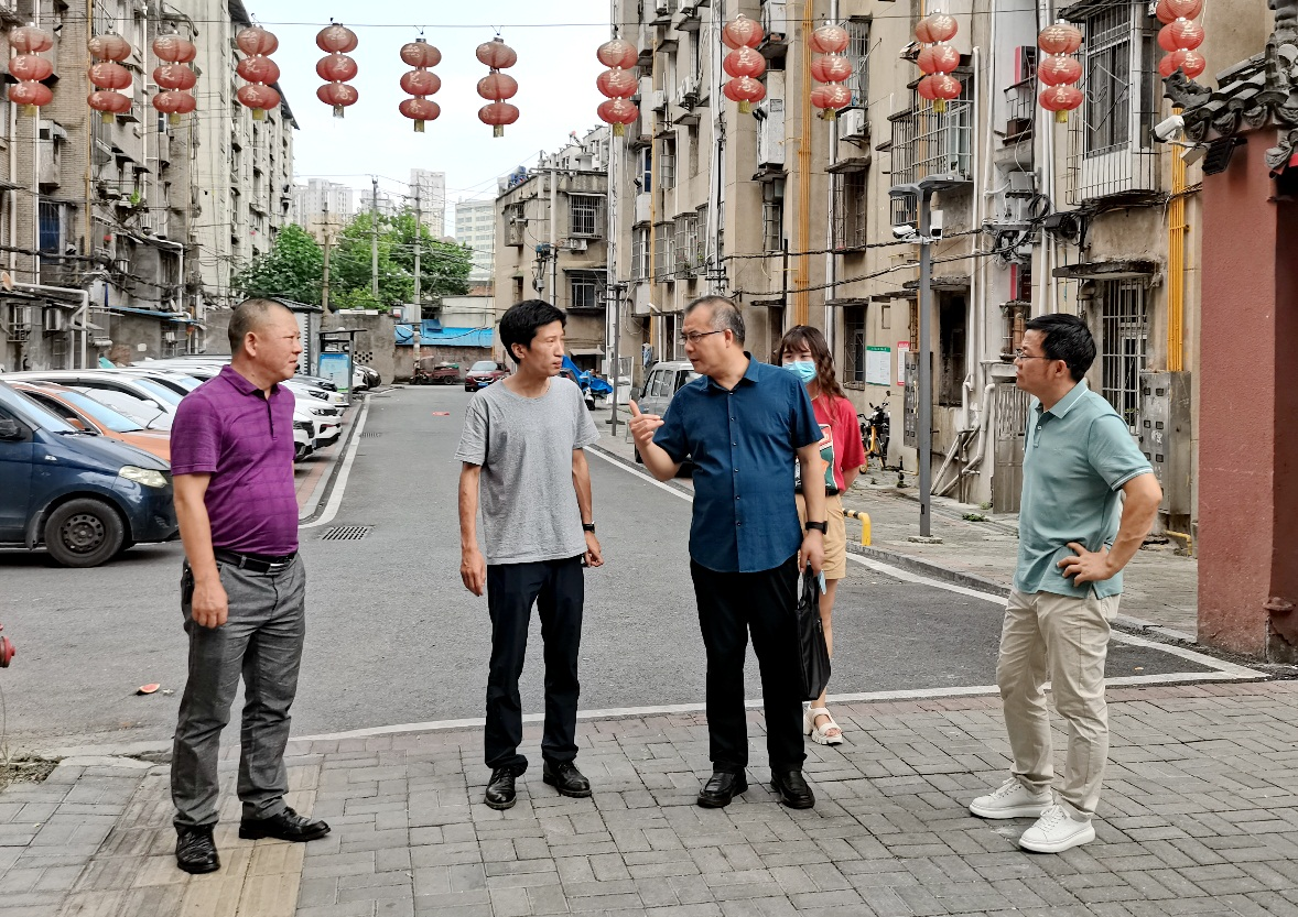 黄华在桥北社区走访时了解到关于老卓家餐厨垃圾、车辆乱停乱放、违建等问题,现场与街道、社区有关负责同志共同研究整治措施。(通讯员 谢凤琴)