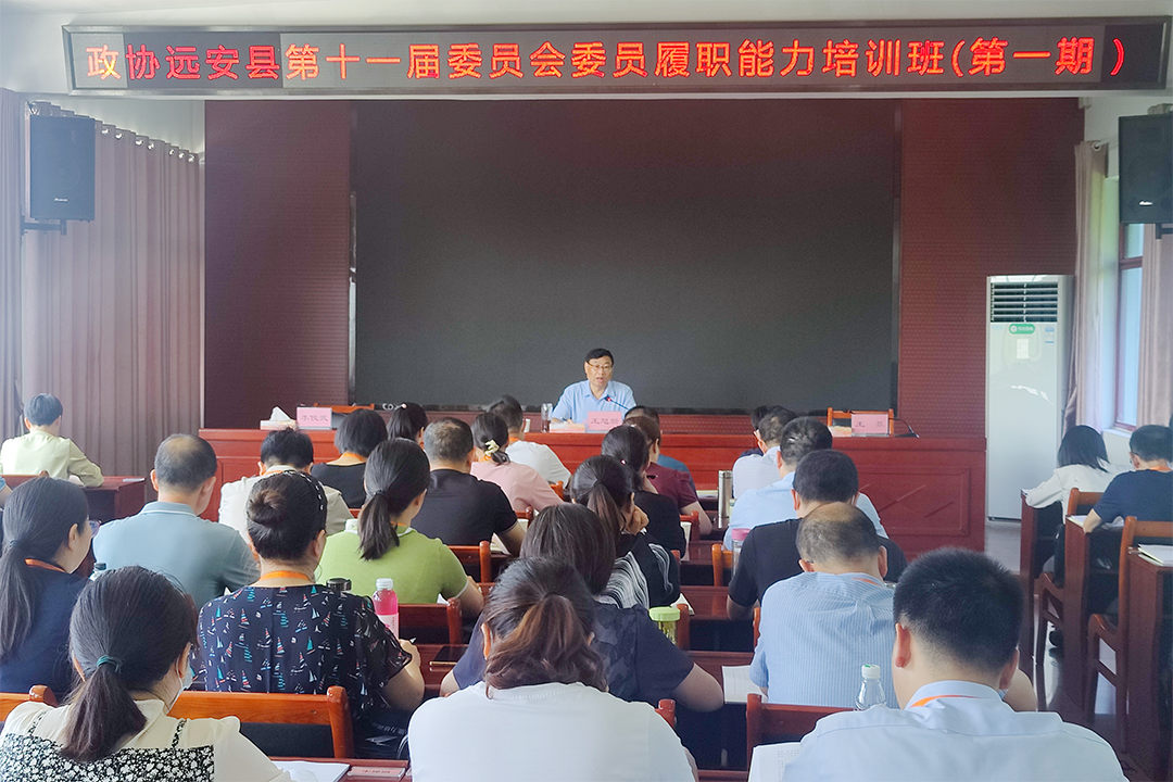 为进一步提升政协委员履职能力水平,7月11日,远安县政协委员履职能力培训班开班,来自各界别的50名政协委员将在县委党校进行为期5天的培训学习。远安县政协主席王旭新出席开班仪式并作专题辅导。