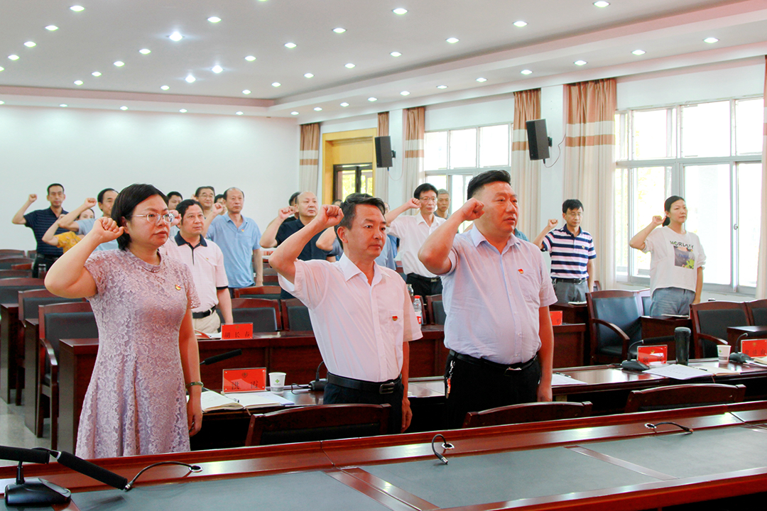 会上,全体党员重温入党誓词、交纳党费、学习《中国共产党章程》第六章。