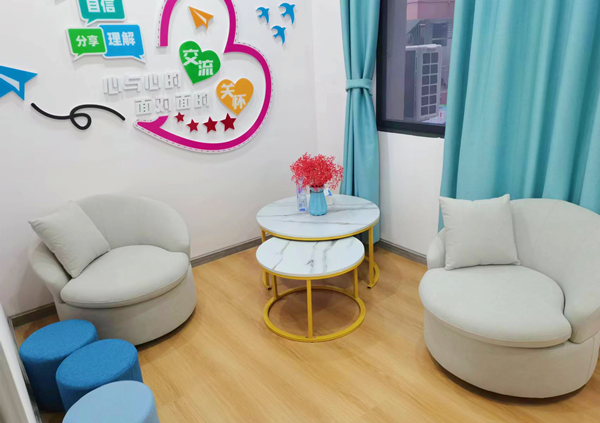 短短5个月,投资45万元、占地约180㎡的心理健康中心(心灵驿站)于今年11月建成投入使用。改造后的心理健康中心(心灵驿站)设有接待室、聊心屋、听心屋、静心屋、舒心屋等5个功能室,室内配备有多功能按摩椅、宣泄放松系统、团体辅导工具箱、心理挂图、电脑等设备,还专门聘请了数位专业的心理学教师负责心理健康教育工作,周一至周五定时接待来访学生。