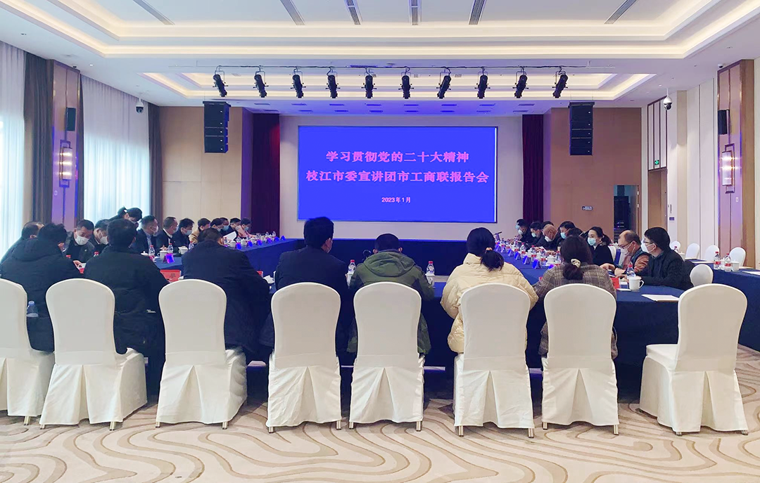 枝江市委宣讲团成员朱小艳作学习贯彻党的二十大精神专题辅导报告。会议传达学习了中央、省、市经济工作会议精神以及全国工商联第十三次代表大会精神,镇(街道)商会进行了述职交流,通过了调整增补部分执行委员的建议,确定了枝江市工商联六届二次执委会召开时间。