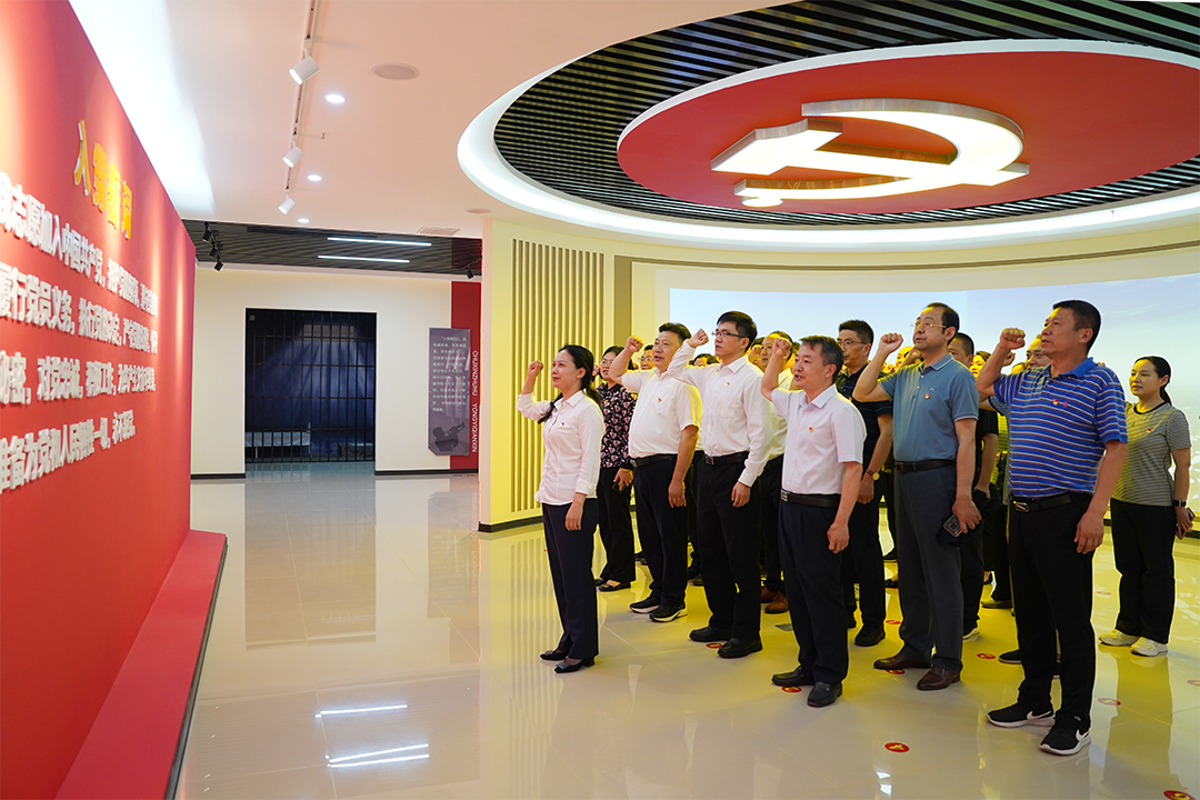 4月20日,枝江市政协党组书记、主席黄丹梅带领市政协全体机关干部到枝江市廉政教育基地开展廉政警示教育,并重温入党誓词。