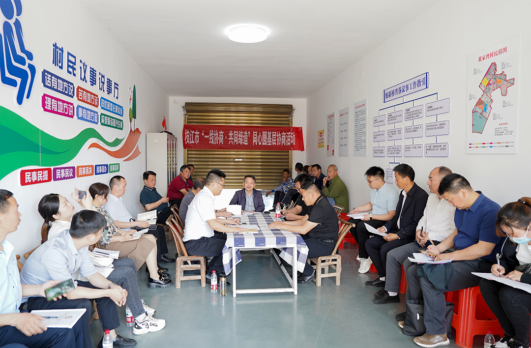 近日,在枝江市七星台镇董家湾村,一场关于该村垃圾分类亭和廖新桥湾落建设的“同心圆”基层协商活动火热进行中。枝江市政协副主席周金锋带领政协委员,与群众代表、镇村干部、市直单位负责人等多方代表齐聚一起,商议湾落建设。