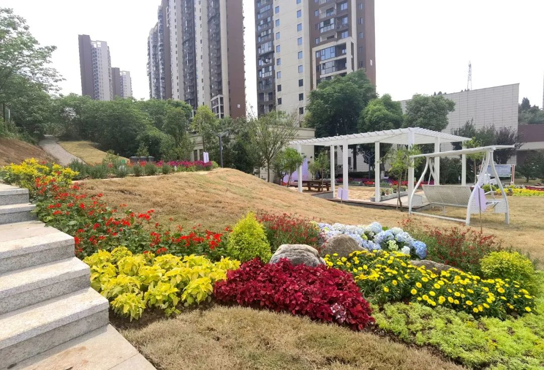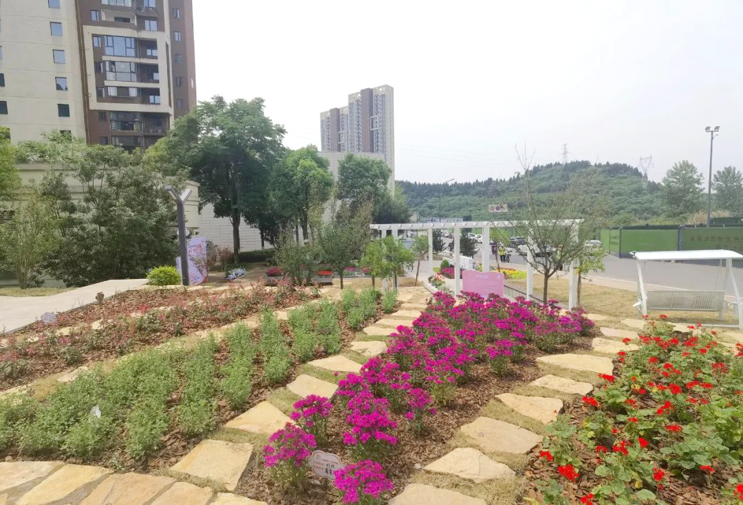 在大家的共同努力下,50余种花草树木落户花园中,在灿烂的夏季里花香满园,“小盆景”变为了“大风景”。近2个月里,通过进行地面翻整、绿化景观修复、亮灯及游步道设置等,原先脏乱差的荒地变成了小区的“新门面”。