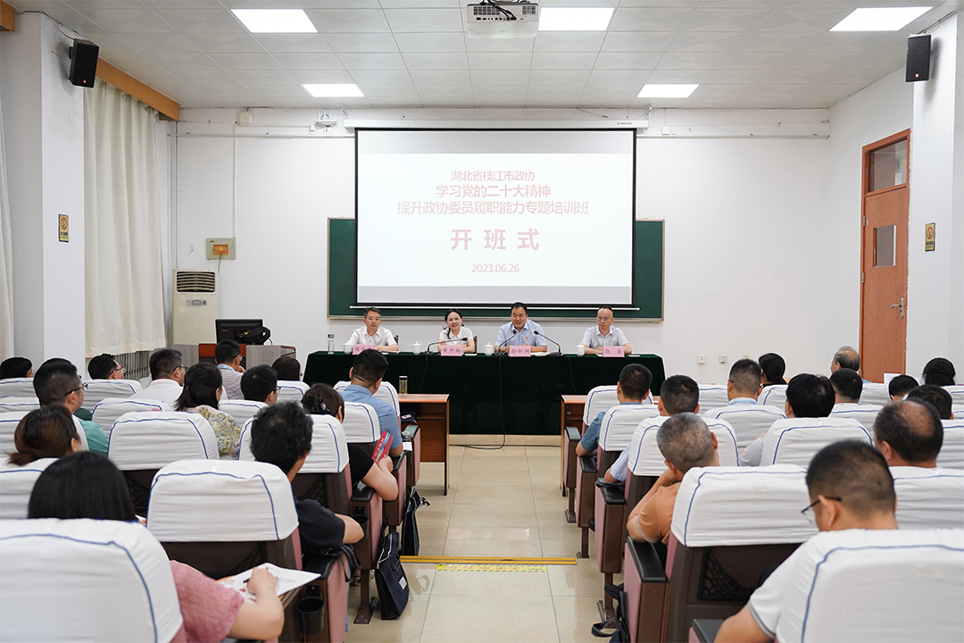 6月26日至29日,枝江市政协在陕西省中共西安市委党校举办“学习党的二十大精神,提升政协委员履职能力”培训班,市政协主席会议成员,部分常委、专委会主任、活动(联)组召集人、委员及办公室人员49人参加培训。枝江市政协主席黄丹梅,副主席敬睿、周金锋及中共西安市委党校校务委员孙新朝出席开班式。