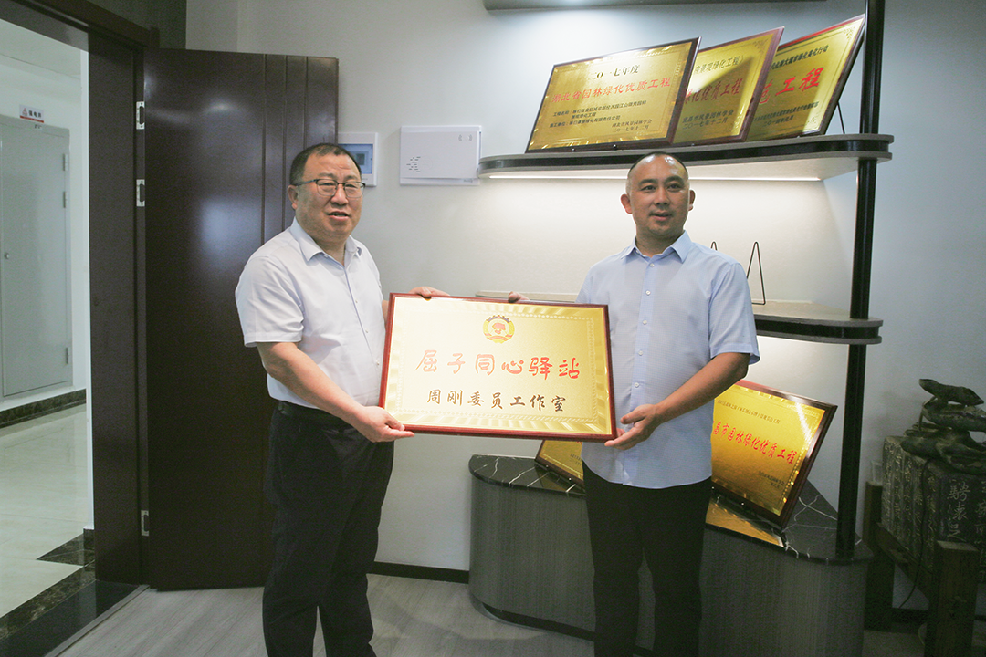 近日,秭归县政协主席王华将“屈子同心驿站”委员工作室牌匾分别授予县政协文化艺术界别委员韩明月和农业界别委员周刚,这标志着秭归县政协文化艺术界与农业界新增两个委员工作室。