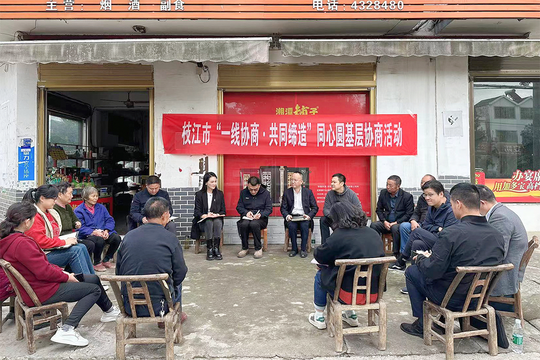 近日,在枝江市问安镇同心桥村老街三街村民李长发家门口,一场围绕三街污水管网改造的“一线协商·共同缔造”同心圆基层协商活动正在进行。枝江市政协副主席敬睿,政协委员、群众代表及相关市直部门、镇村负责人参加协商活动。