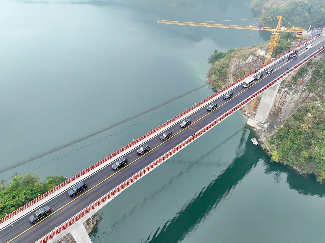 2020年8月13日,峡洞岩大桥终于开工了。历经一千多个日夜奋战,克服地质结构复杂、洪涝灾害、极端干旱等自然条件对施工的影响和地理位置恶劣、物资运输困难等江上建桥的难点,今年8月21日,峡洞岩桥顺利合龙。