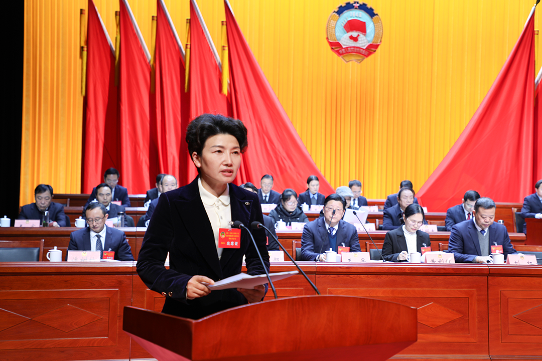 刘红代表政协夷陵区第六届委员会常务委员会,向大会报告提案工作情况。