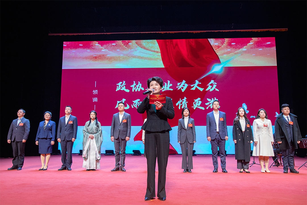 “苏轼最大的魅力,不是让内心被环境吞噬,而是超出环境,以内心的光亮去照亮生活的路。”政协委员谭圆圆以《一蓑烟雨任平生》为题为大家分享了苏轼豁达的人生观与大局观,勉励委员们笃信实干,永远保持昂扬向上的斗志,不断磨炼能力本领。