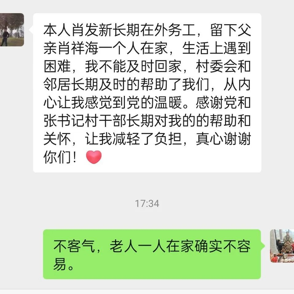 2023年10月,傅家堰乡鸭儿坪村收到了一条“特别”的微信,感谢村干部通过“同心·守望”平台对其父亲的关心与帮助。