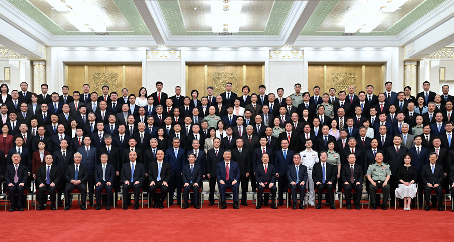 6月24日,全国科技大会、国家科学技术奖励大会和中国科学院第二十一次院士大会、中国工程院第十七次院士大会在北京人民大会堂隆重召开。会前,习近平等领导同志亲切会见国家科学技术奖获奖代表,并同大家合影留念。新华社记者 谢环驰 摄