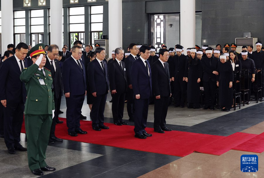 7月25日,习近平总书记特别代表,中共中央政治局常委、全国政协主席王沪宁率中共代表团在越南首都河内,吊唁越共中央总书记阮富仲逝世。新华社记者 姚大伟 摄