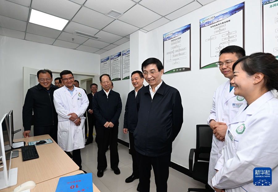 中共中央政治局常委、全国政协主席王沪宁到拉萨、山南就对口援藏等工作开展情况进行调研。这是8月27日,王沪宁在山南市人民医院调研。新华社记者 申宏 摄