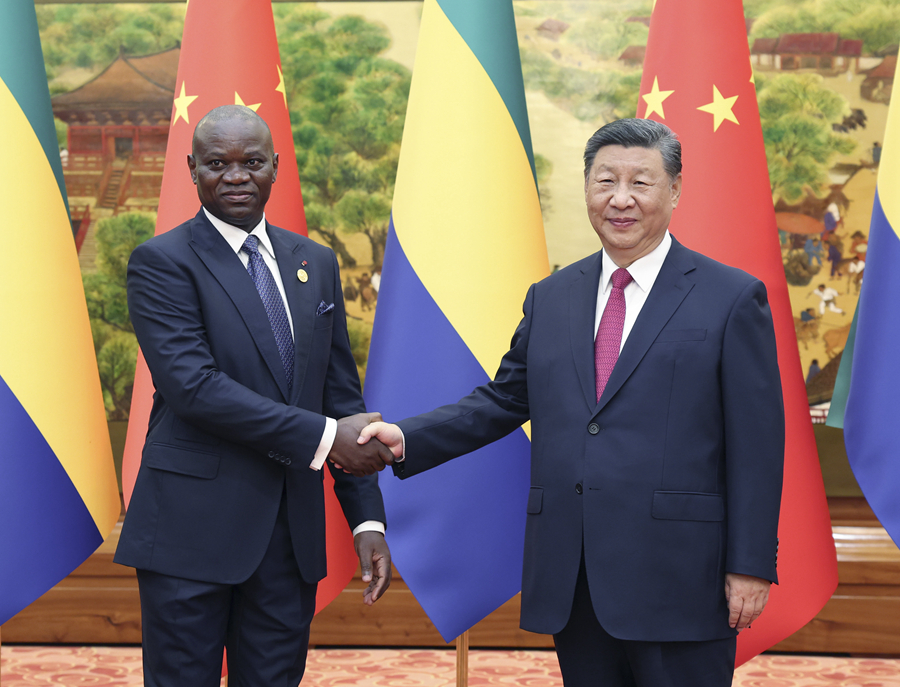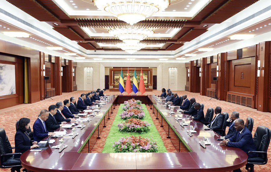 新华社北京9月4日电(记者董雪、刘杨)9月4日下午,国家主席习近平在北京人民大会堂会见来华出席中非合作论坛北京峰会的加蓬总统恩圭马。
